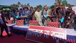 ধ্বংস করা মাদকদ্রব্যের মধ্যে রয়েছে ভারতীয় তৈরী বিভিন্ন প্রকার মদ ৪৫ হাজার ৬৮১ বোতল, বিয়ার ১ হাজার ৭৩৭ বোতল, গাঁজা ৪৪৪.৮ কেজি, বিভিন্ন প্রকার বিড়ি ৪ লাখ ৬৬ হাজার ৬৩৪ প্যাকেট, ইয়াবা ট্যাবলেট ১হাজার ৪১৫ পিস ও তামাক পাতা ৩২.৫ কেজি।