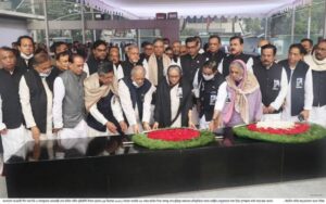 প্রতিনিধি এনামুল হক :বঙ্গবন্ধুকন্যা প্রধানমন্ত্রী শেখ হাসিনা শহীদ বুদ্ধিজীবী দিবসে বুধবার (১৪ ডিসেম্বর ২০২২) সকালে ধানমন্ডি ৩২ নম্বরে জাতির পিতা বঙ্গবন্ধু শেখ মুজিবুর রহমানের প্রতিকৃতিতে পুস্পস্তবক অর্পণ করে শ্রদ্ধা জানান। পরে বাংলাদেশ আওয়ামী লীগ সভাপতি হিসেবে দলের দলের কেন্দ্রীয় নেতৃবৃন্দদের সঙ্গে নিয়ে বঙ্গবন্ধুর প্রতিকৃতিতে পুস্পস্তবক অর্পণ করে শ্রদ্ধা জানান
