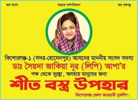 কিশোরগঞ্জ প্রতিনিধি সাদেক মিয়া :কিশোরগঞ্জ-১ আসনের মাননীয় সংসদ সদস্য ডা সৈয়দা জাকিয়া নূর লিপি আপা,র নির্দেশে ঝটিকা কম্বল বিতরণ কার্যক্রম চলিতেছে। তিনি গরীব ও অসহায় মানুষের মাঝে আজকের রাত ৯ টায় রেল স্টেশনে উপস্থিত থাকার জন্য সবাইকে অনুরোধ করা গেল।