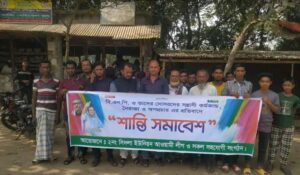 কিশোরগঞ্জ প্রতিনিধি সাদেক মিয়া :কিশোরগঞ্জ জেলা হোসেনপুর উপজেলার ২নং সিদলা ইউনিয়নের আওয়ামীলীগ ও সকল সহযোগী সংঘঠন আওয়ামীলীগ স্বেচ্ছাসেবক লীগের সভাপতি রুহুল আমিন এর নেতৃতে আজ ১১/০২/২০২৩ ইং তারিখ দুপুর ১১.০০ ঘটিকার সময় পাগলা বাজার হইতে পিতলগঞ্জ বাজার পযর্ন্ত বিএনপি ও তাদের দোসরদের সন্ত্রাসী কর্মকান্ড নৈরাজ্য ও অপপ্রচার এর প্রতিবাদে শান্তি সমাবেস করা হয়।