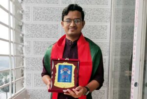 নাচ শেষে আয়োজকরা রিফাতের হাতে উৎসব স্মারক তুলে দেন।