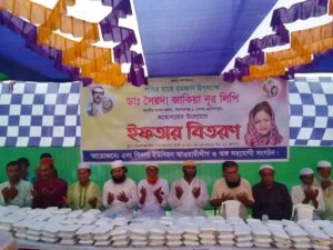 পবিত্র মাহে রমজান উপলক্ষে কিশোরগঞ্জ জেলা হোসেনপুর উপজেলা , কিশোরগঞ্জ হোসেনপুর ১ আসনের সংসদ সদস্য ডা সৈয়দ জাকিয়া নুর লিপির উদ্যেগে ৬০০ রোজাদার মানুষের মাঝে ইফতার বিতরণ করা হয়েছে। শুক্রবার ১৪ এপ্রিল বিকালে সিদলা ইউনিয়ন আওয়ামীলীগের অঙ্গ ও সহযোগী সংঘঠনের আয়োজনে পিতলগঞ্জ উচ্চ বিদ্যালয়ের মাঠে এই সব ইফতার বিতরণ করা হয়।