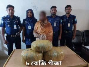 কিশোরগঞ্জ প্রতিনিধি সাদেক মিয়া :কিশোরগঞ্জ জেলা কটিয়াদী থানায় ০৮ (আট) কেজি গাঁজাসহ কটিয়াদী থানাধীন কৈতরীপাড়া এলাকায় বিবাদী ১। ঝরনা বেগম (২৮), স্বামী- মোঃ খায়রুল মিয়া, সাং- কৈতরীপাড়া, থানা- কটিয়াদী, জেলা-কিশোরগঞ্জকে কটিয়াদী থানাধীন গচিহাটা তদন্ত কেন্দ্রের পুলিশ গ্রেফতার করেন।
