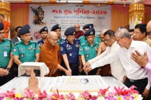 আইজিপি বৌদ্ধ বিহারে এসে পৌঁছালে বৌদ্ধ ধর্মীয় নেতৃবৃন্দ তাঁকে ফুল দিয়ে শুভেচ্ছা জানান। তিনি একটি কেক কেটে সকলের সাথে বুদ্ধ পূর্ণিমার শুভেচ্ছা বিনিময় করেন।